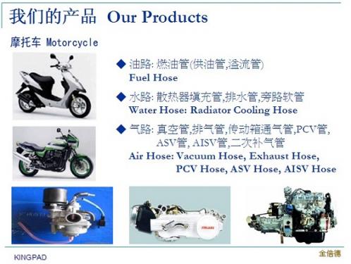 廈門金倍德橡塑科技有限公司是一家集研發、生産、模具設計和銷售各類橡膠(塑膠)制品的綜合性企業,專業生産、加工、銷售精密橡膠(塑膠)制品: 各類機車燃油管、輸油管、回油管、CARB認證油管、EPA認證油管、電噴車專用油管(四重管)、摩托車二次補氣專用油管 (外紗 ACM管)、水管、尼龍管、矽膠管、氣管、PU管、PVC管、異型橡膠管、密封膠條等。産品主要應用於(yú)汽車、工程機械、摩托車、通用汽油機、發電機組、園林植保機械、水暖衛浴、醫療器材、電子電器、通迅設備(bèi)等行業。